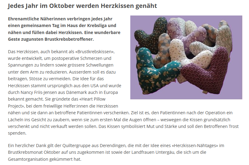 Die Landfrauen Untergäu nähen Herzkissen auch am 4. März, am 15. April, am 20. Mai, am 10. Juni und am 9. September. Sei auch du dabei!