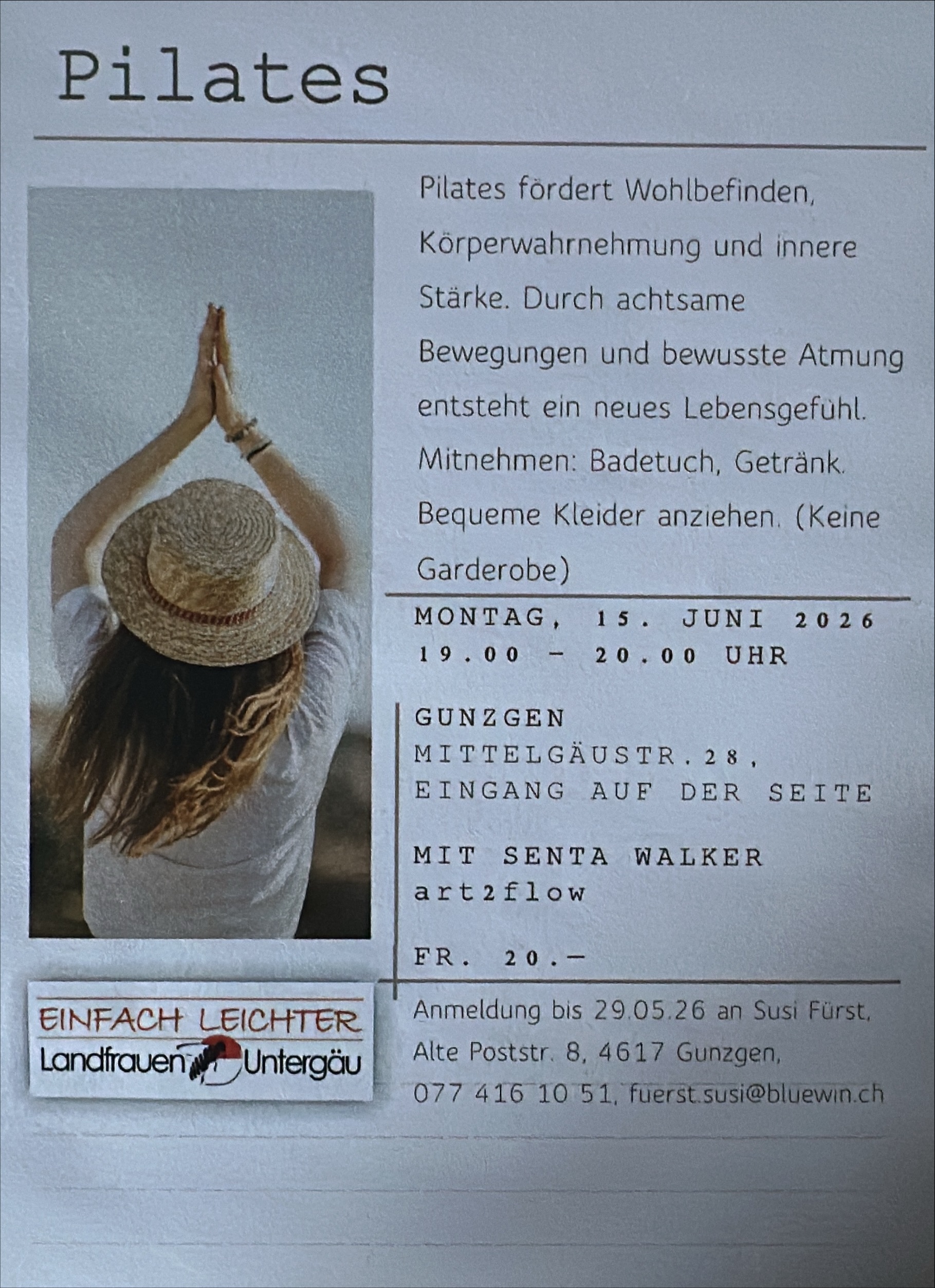 Pilates für Körper & Geist 🧘♀️Gönn dir Bewegung mit Wirkung: Im Pilateskurs mit Senta Walter von art2flow stärkst du deine Körpermitte, verbesserst deine Haltung und findest neue Balance. Ein wohltuender Kurs für Kraft, Stabilität und fliessende Bewegungen.